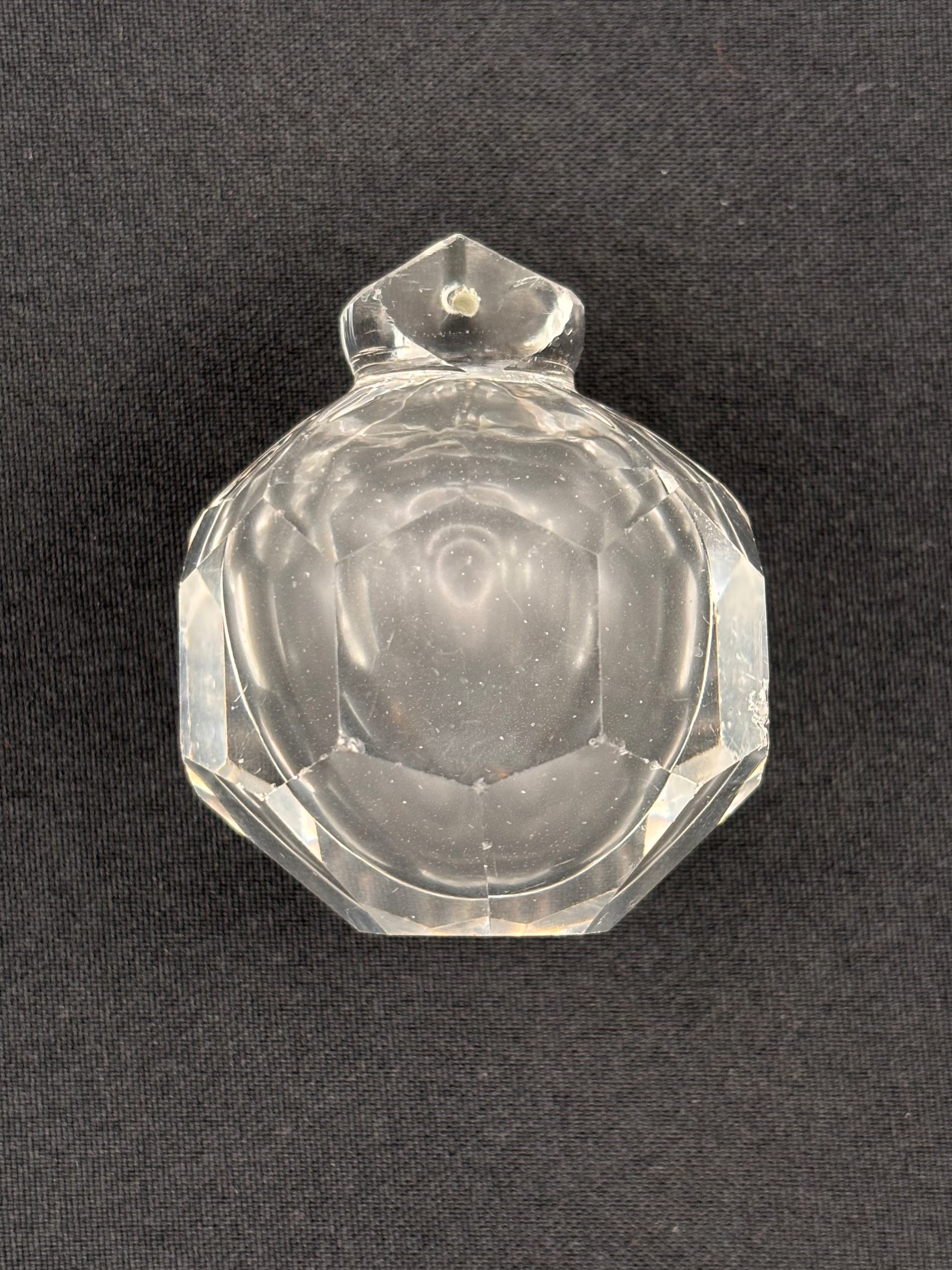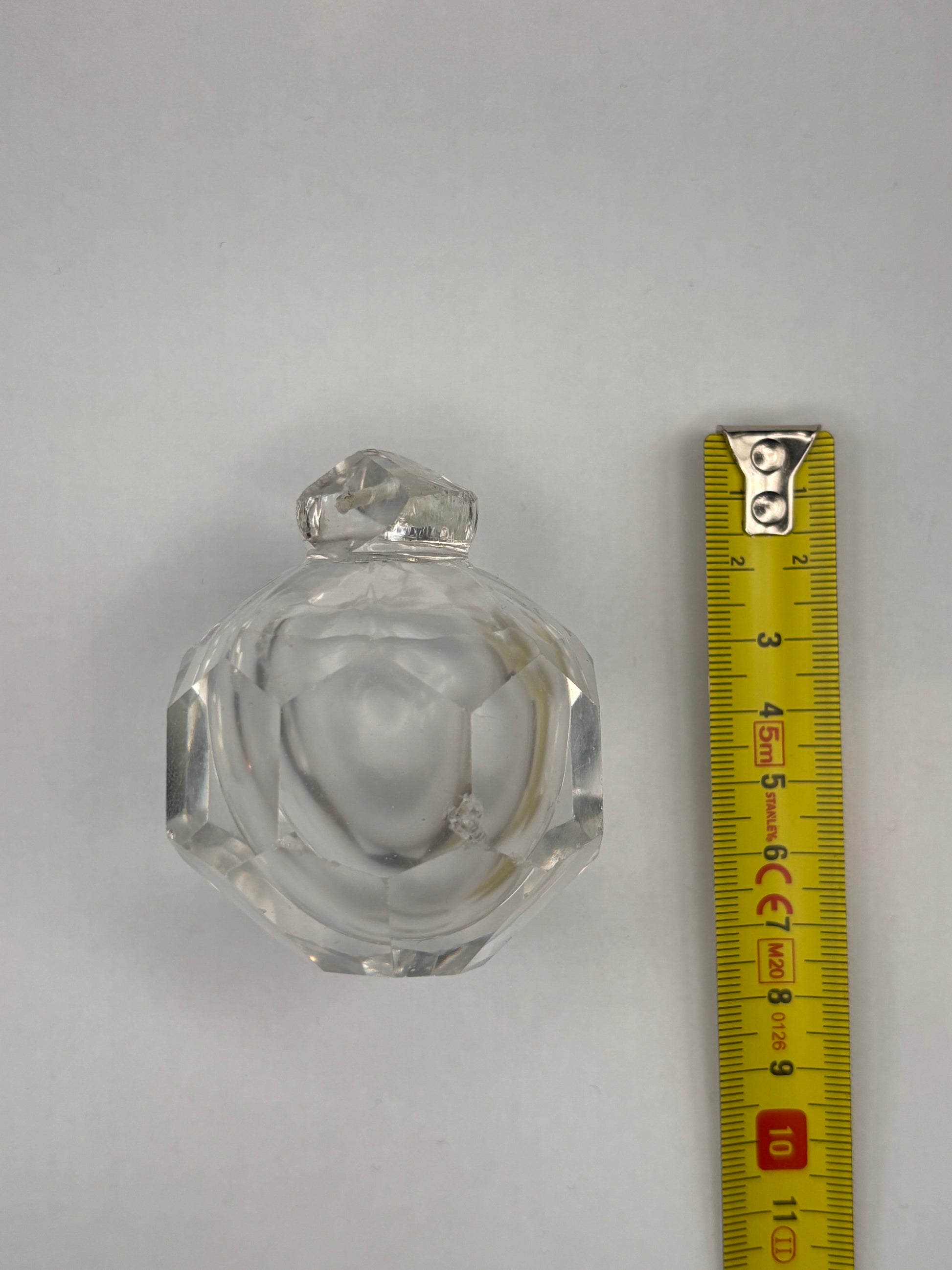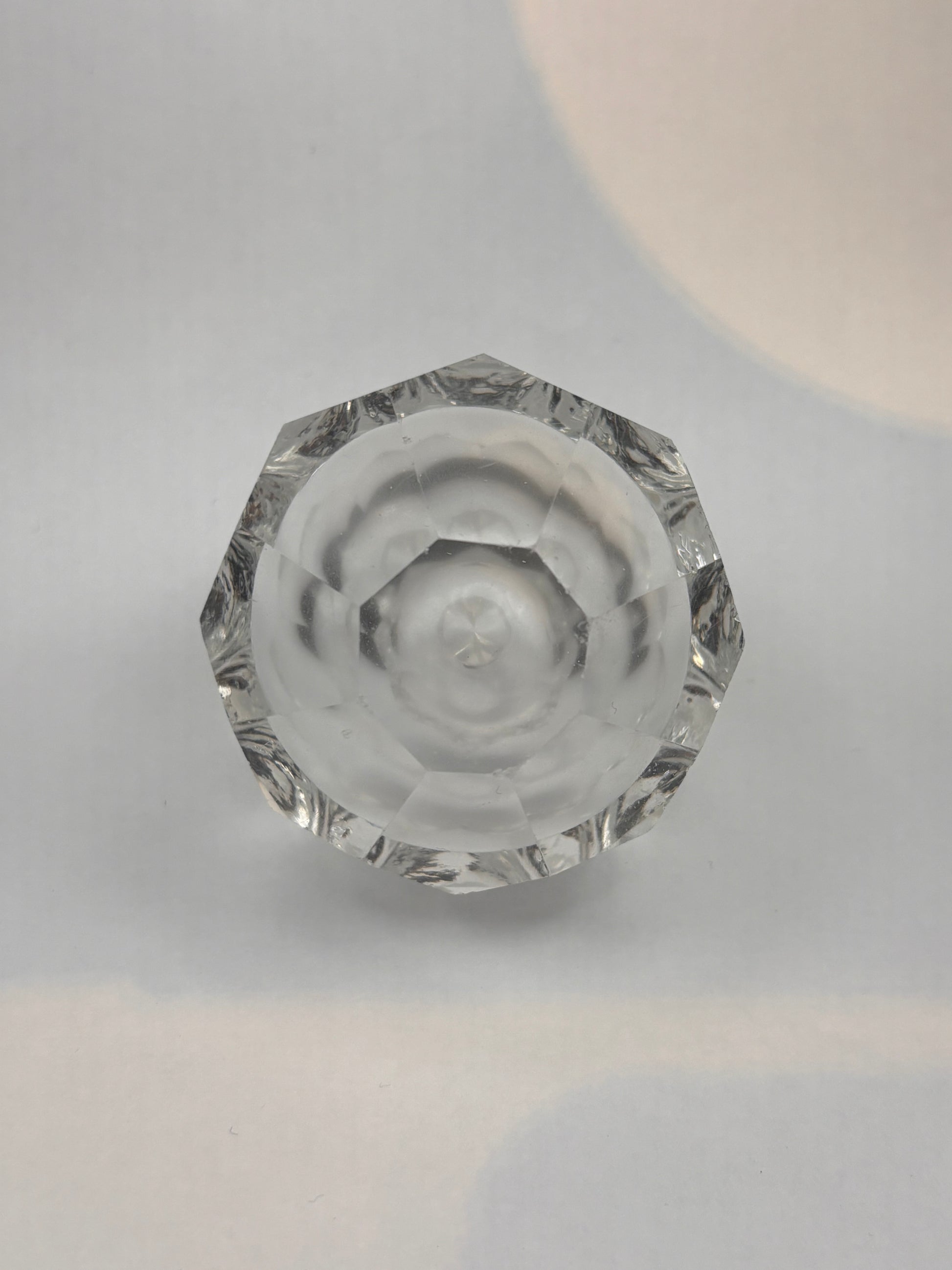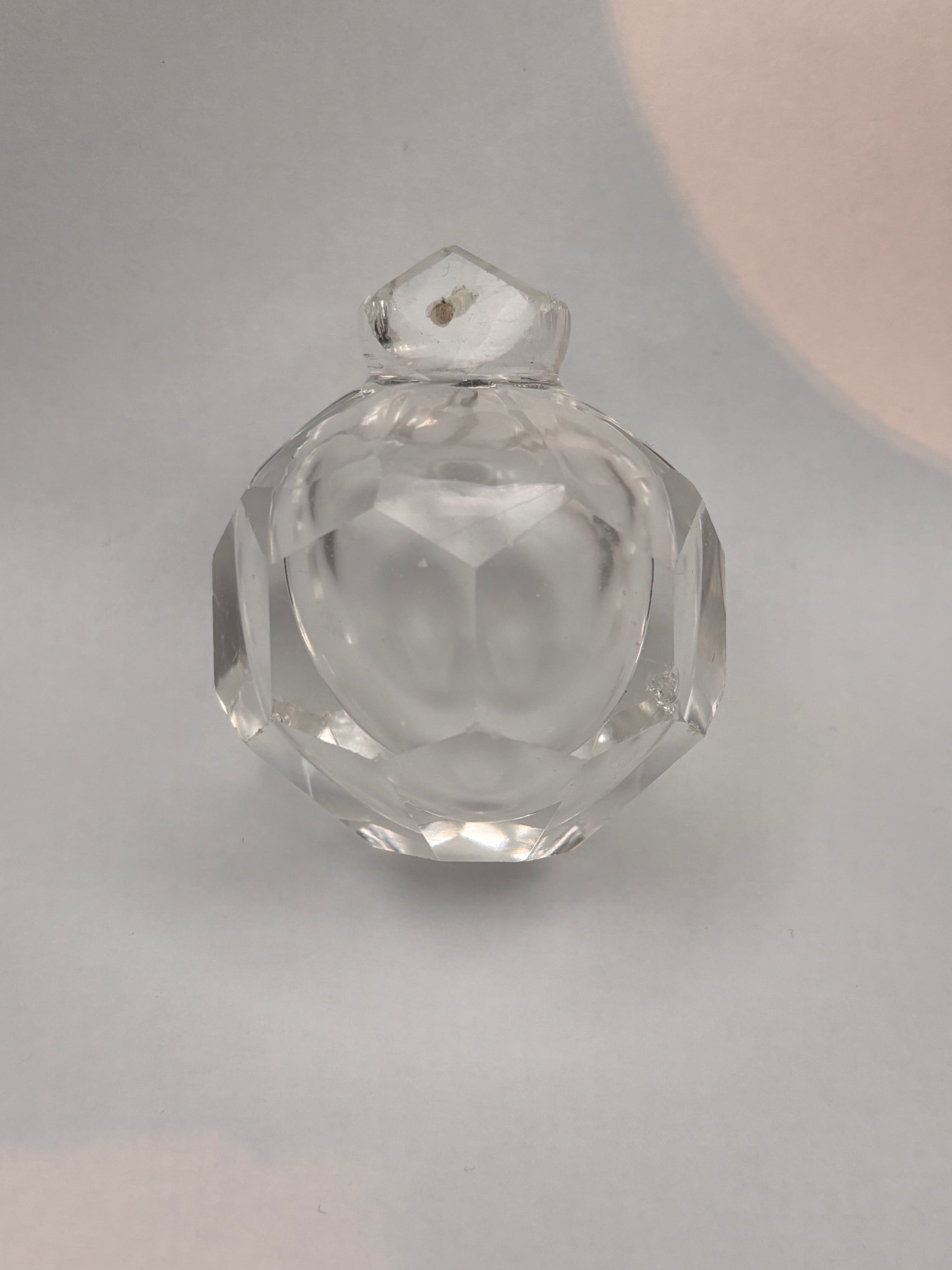 Finial with honeycomb facets. Opaline-like shade in the glass and air bubble in the centre.