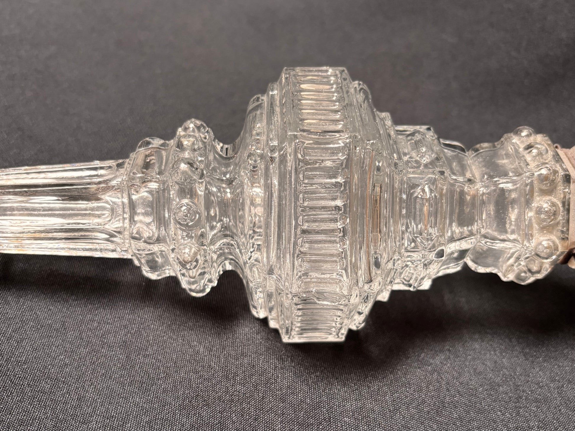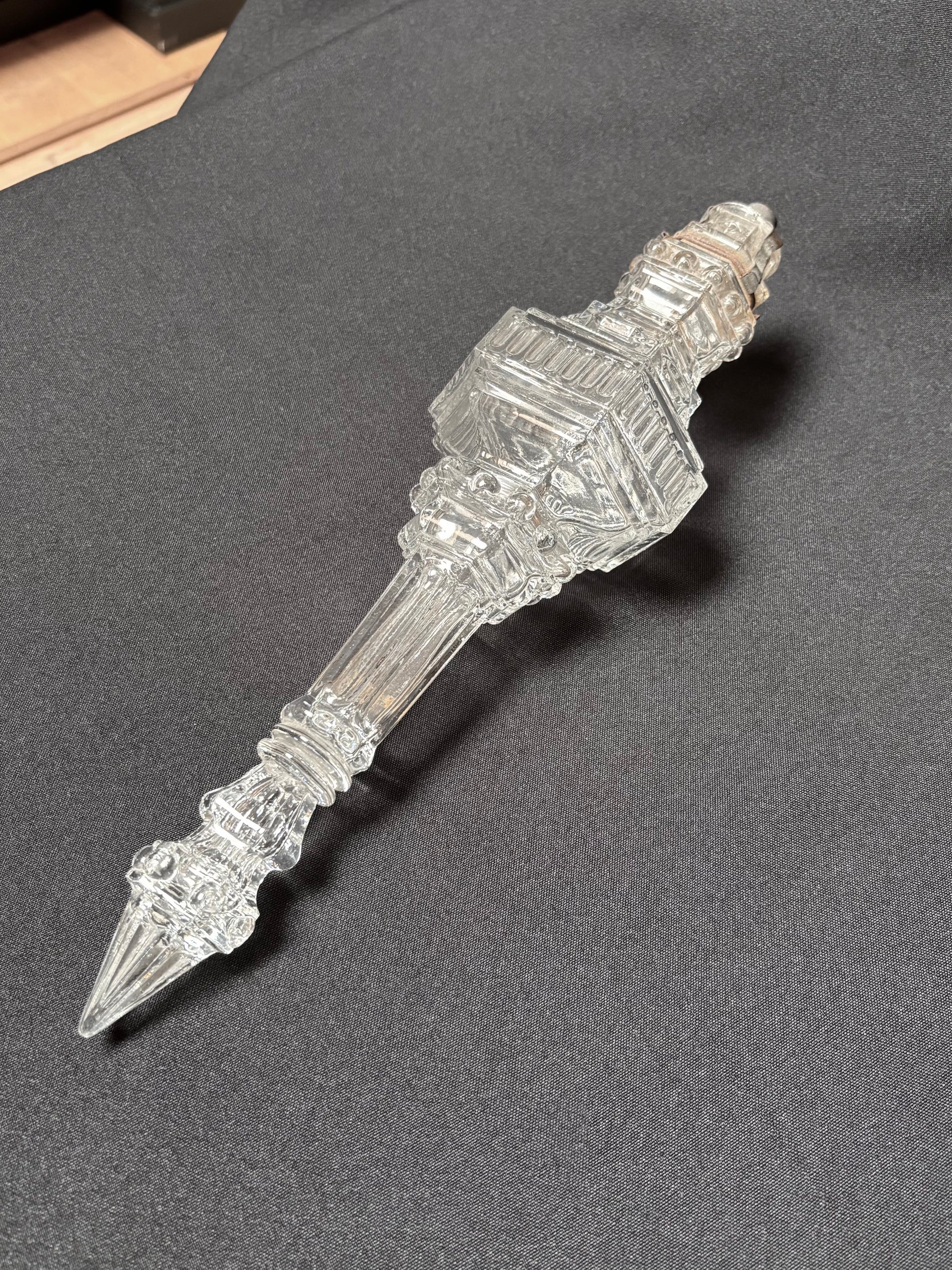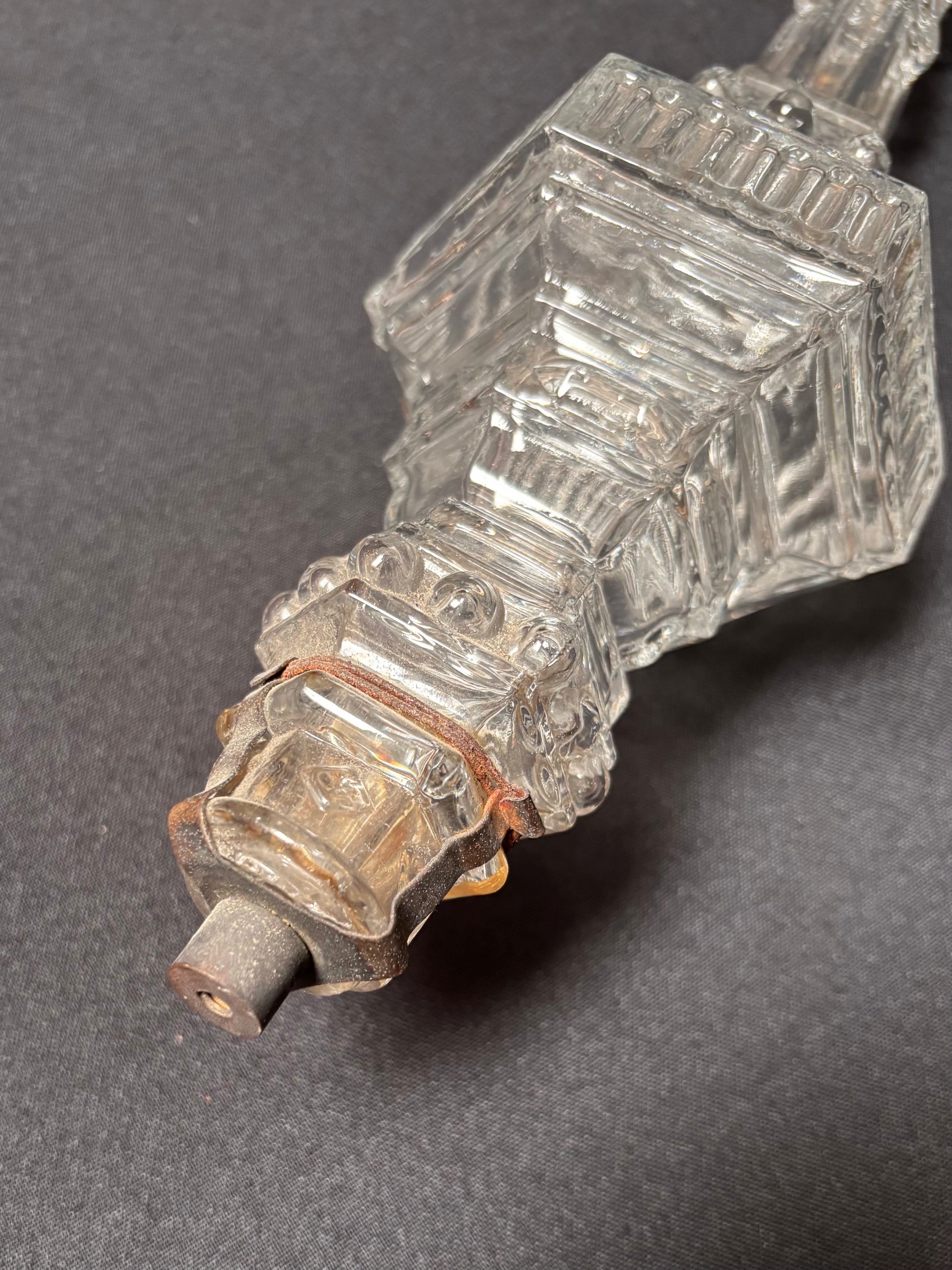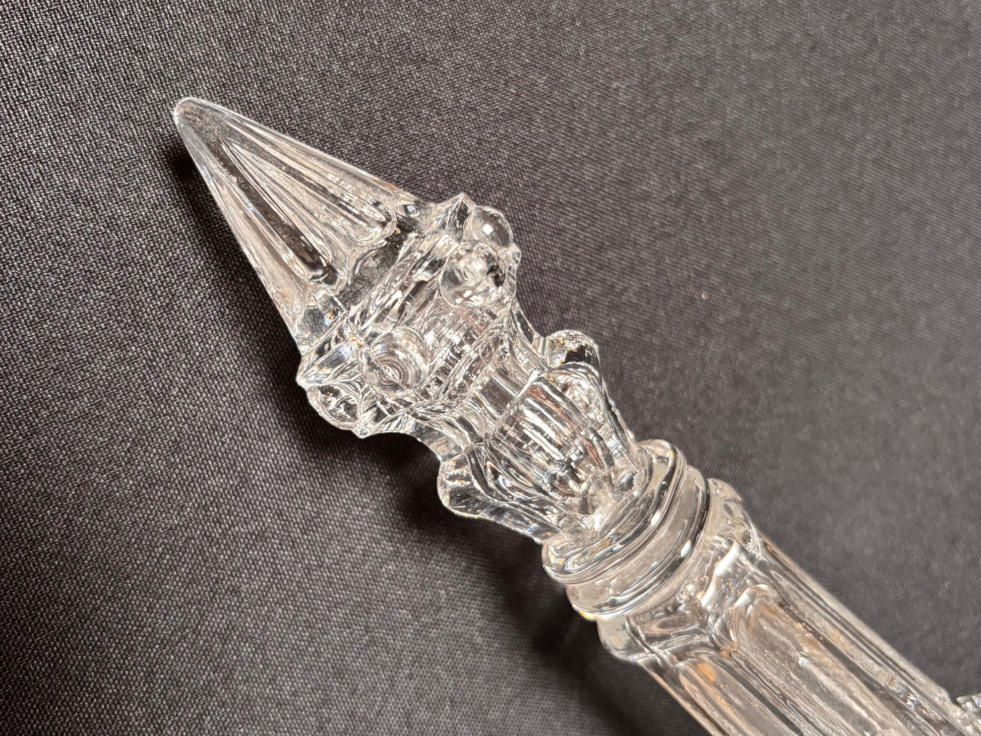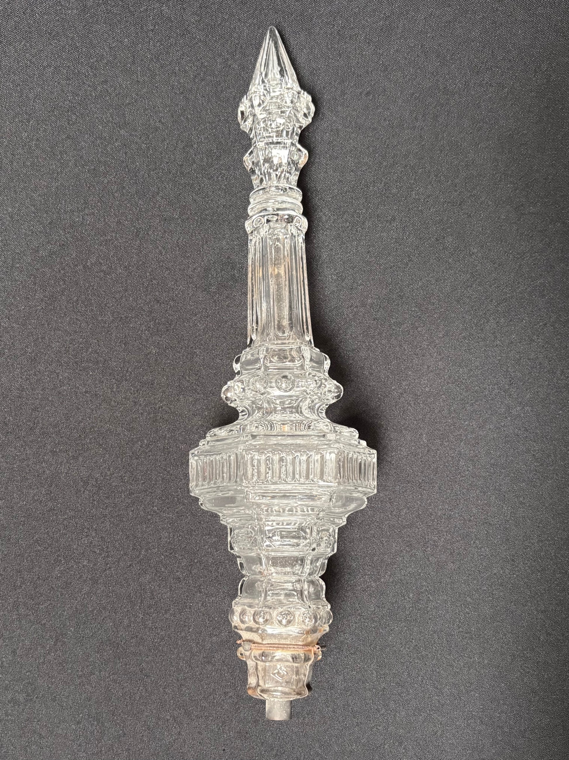 Pinnacle decorated with a straw-bead in the middle of the shaft. In Neo-gothic style, a beautiful 19th-century piece. Some pieces still have the metal connective part at the bottom. Verre moulé or moulded glass.