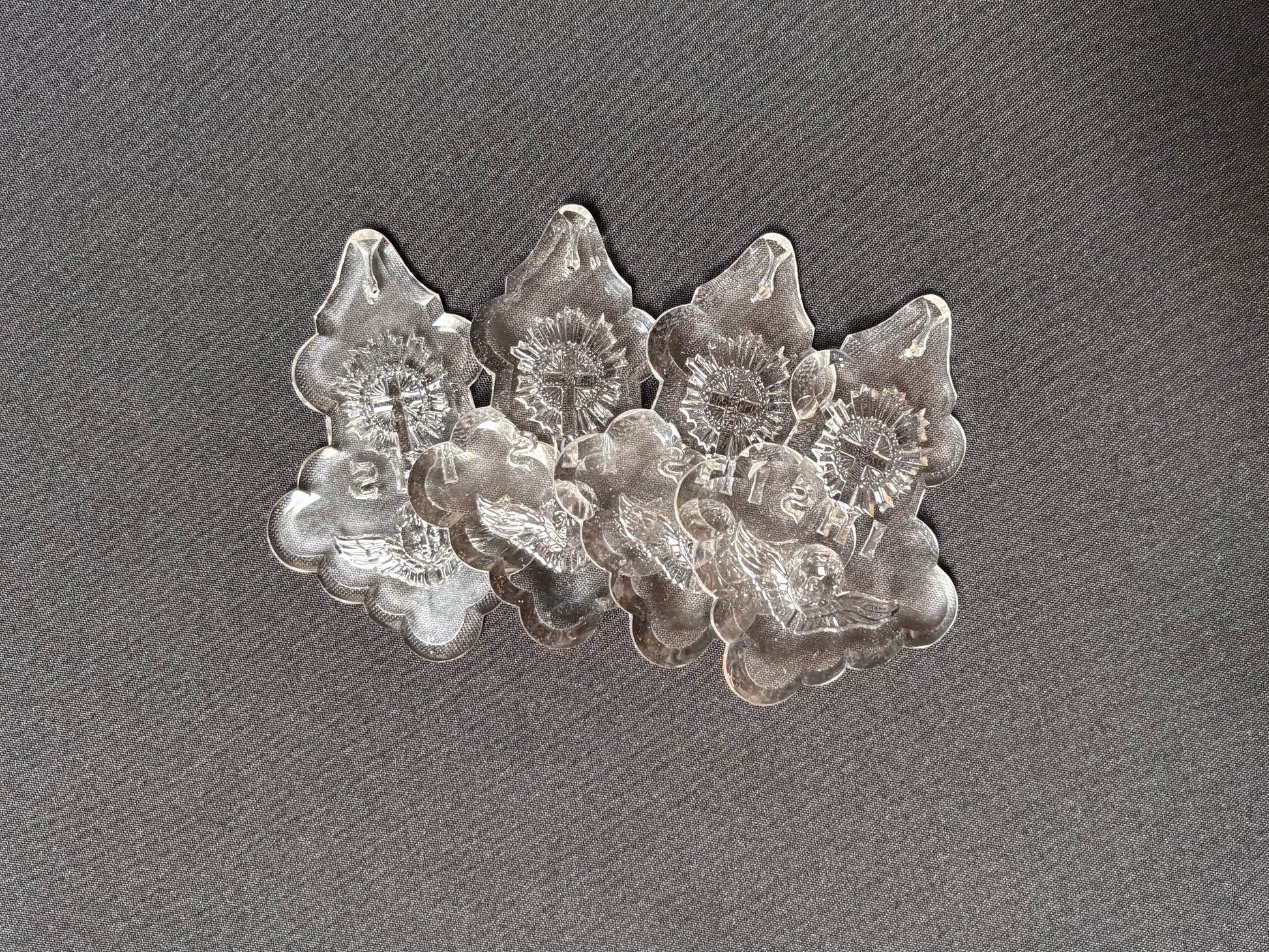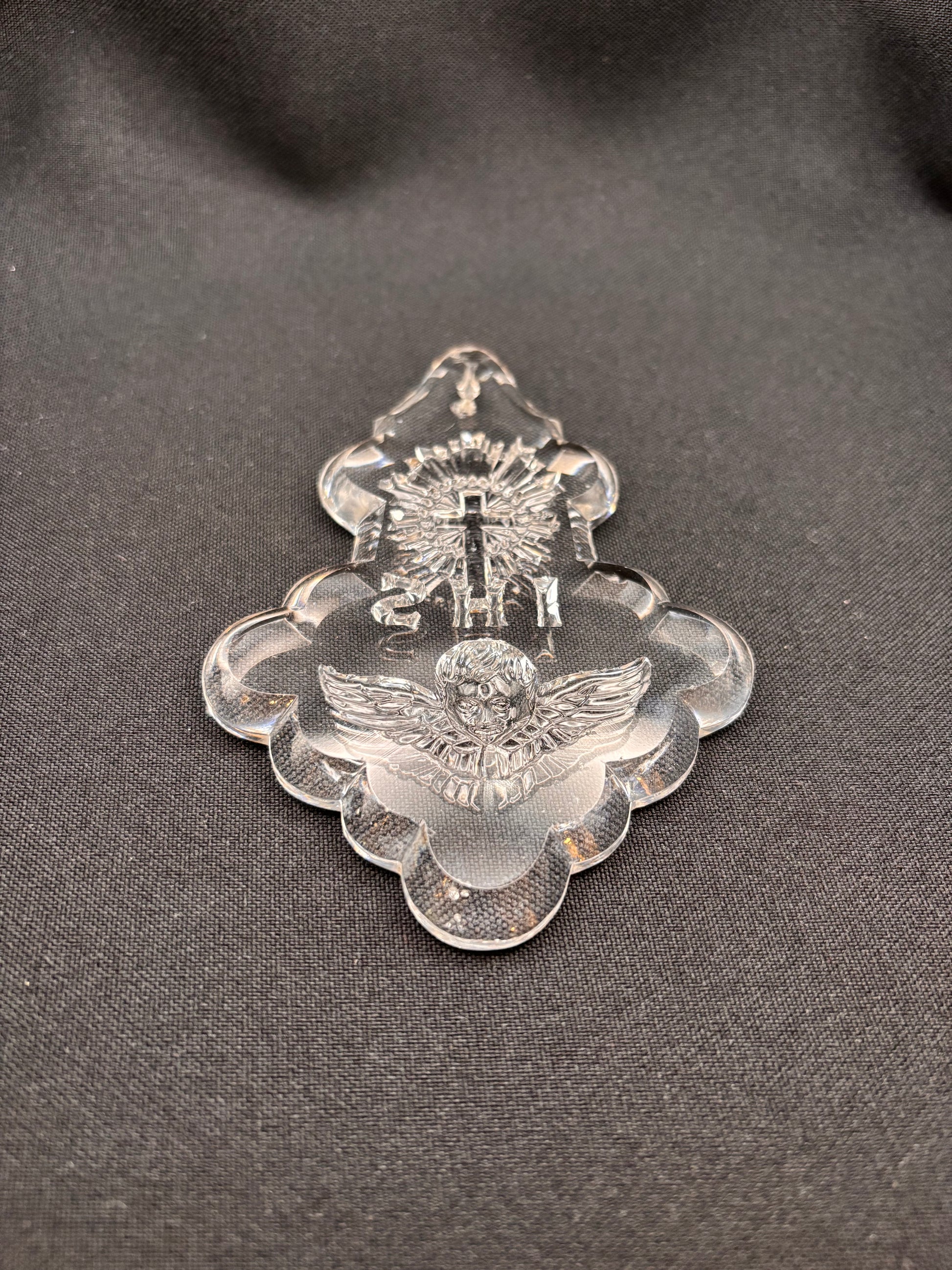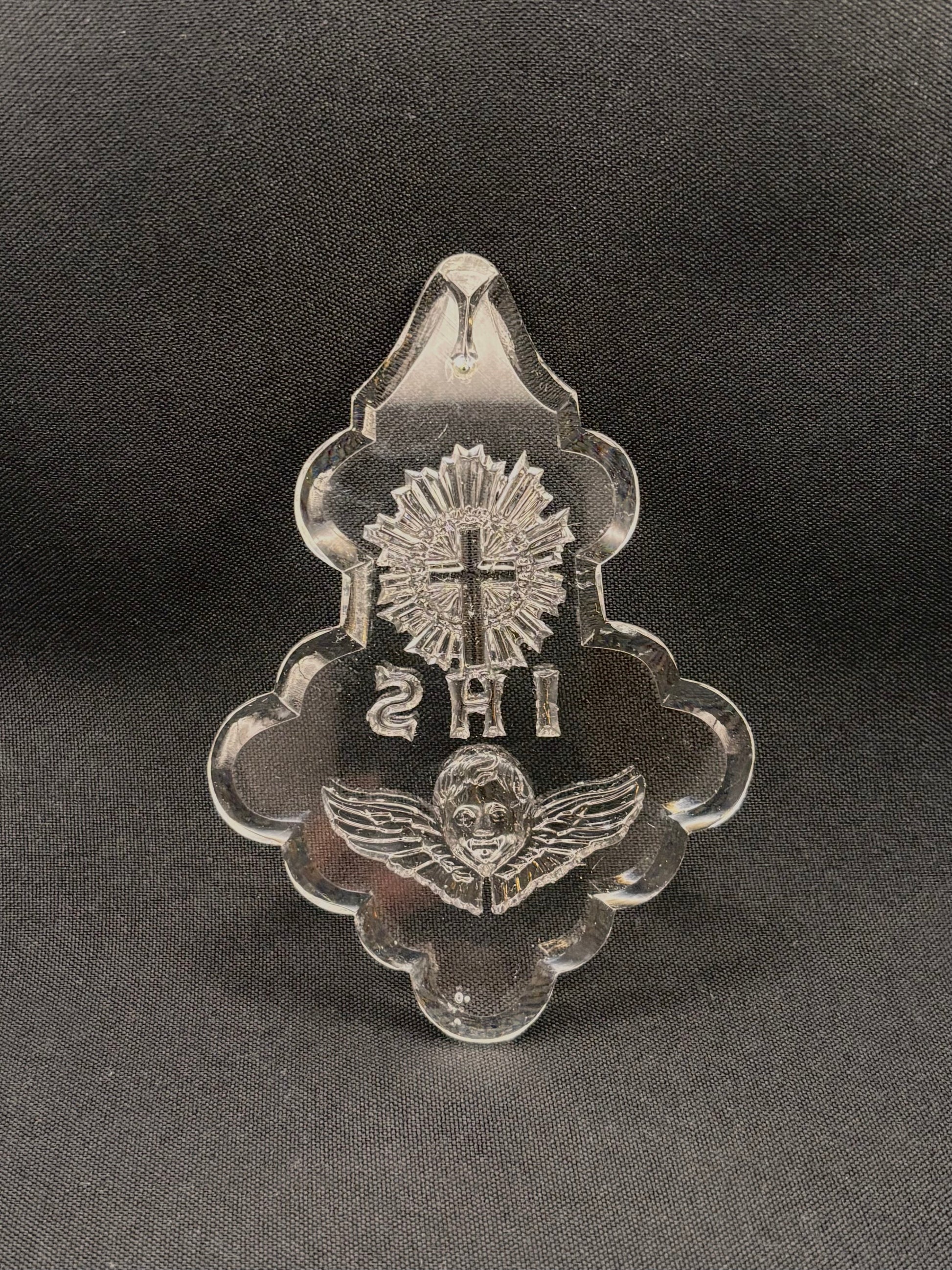 Plaquette with putto or winged angle, letters IHS and a cross with rays. Outline with rounded facets.
