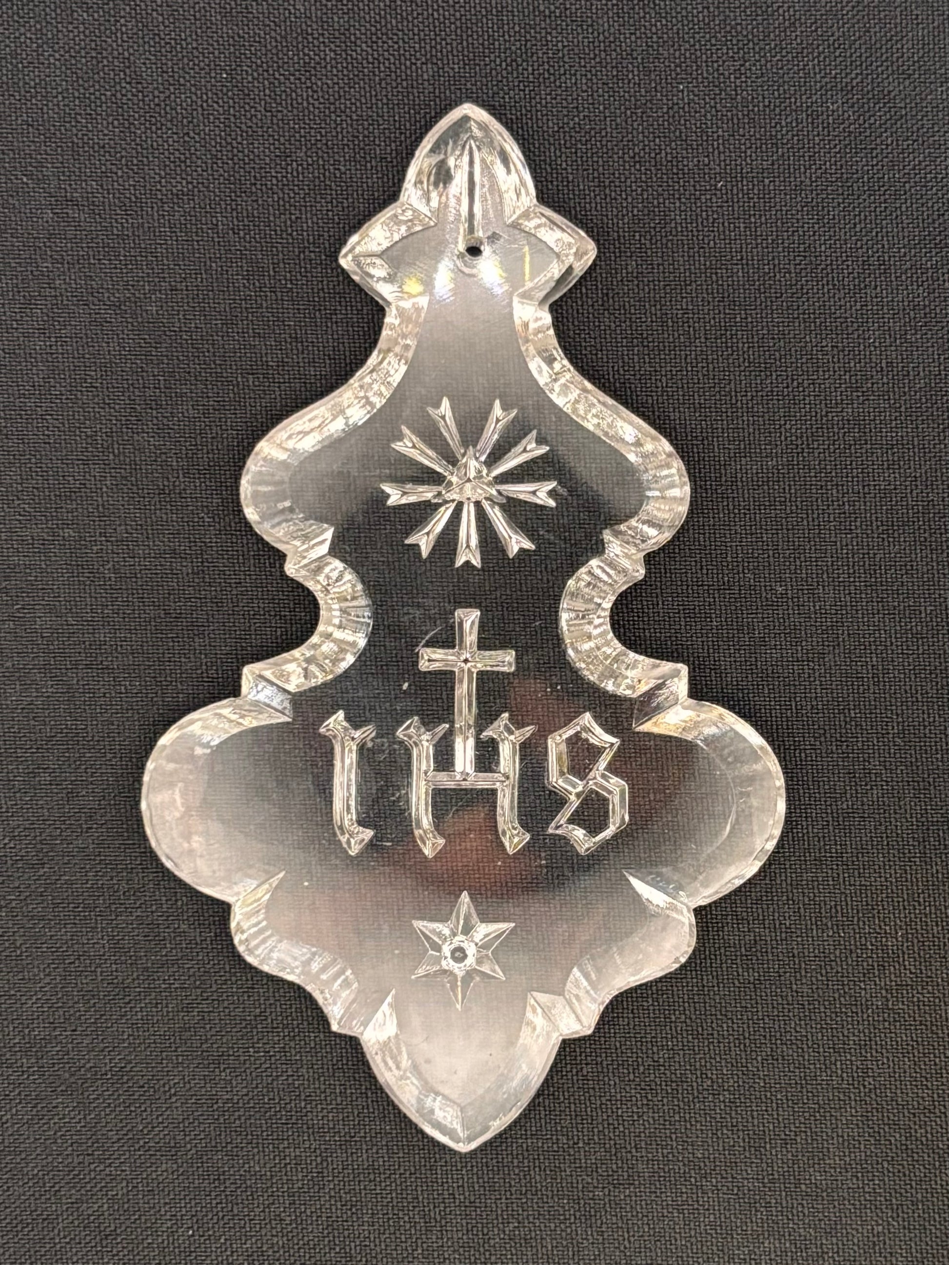 Plaquette with letters 'IHS' with a cross, crowned by an eye of providence. At the lower bottom a star.