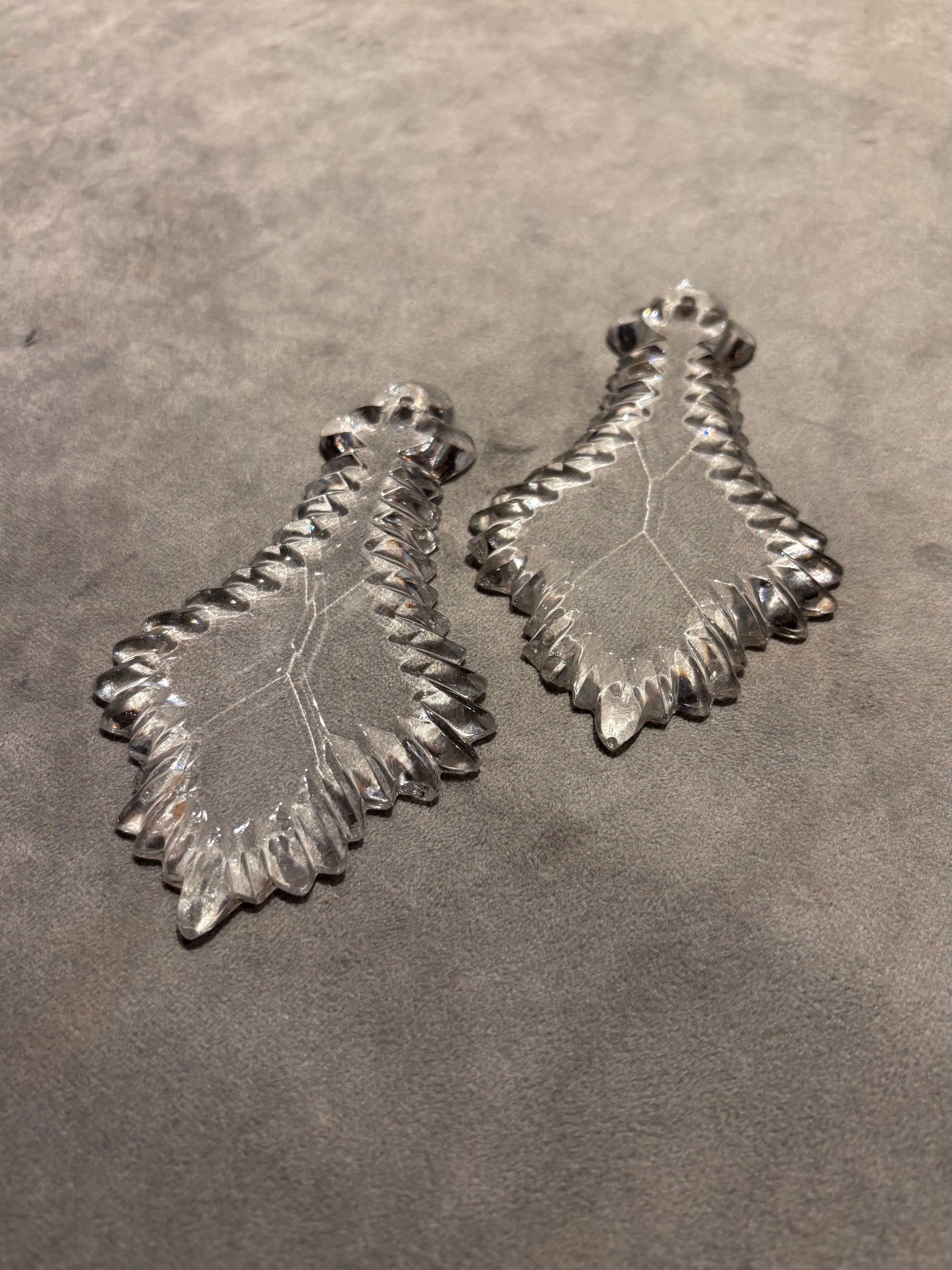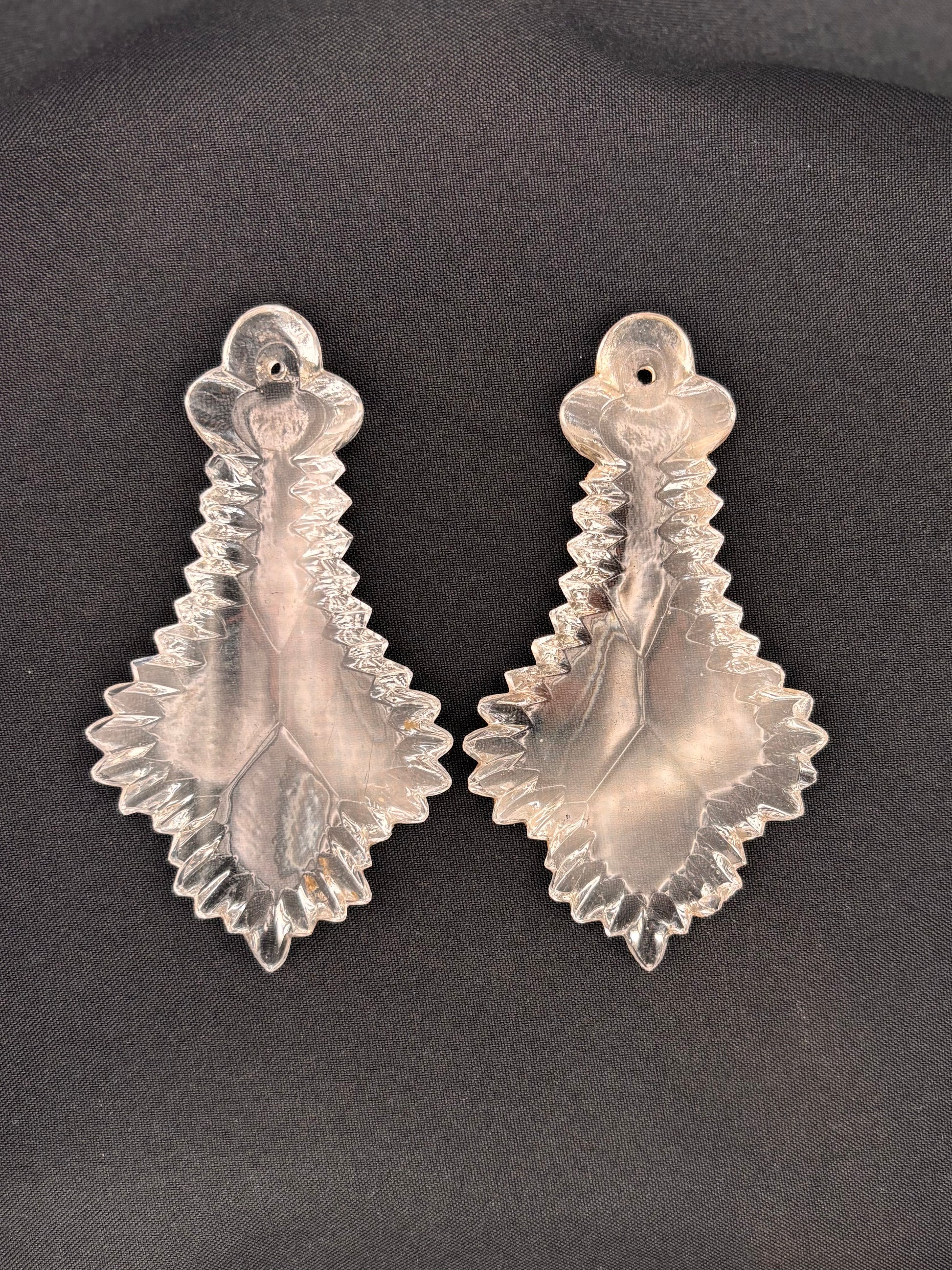 Plaquette with sharp facets alongside the outline. Top in the shape of a trefoil.