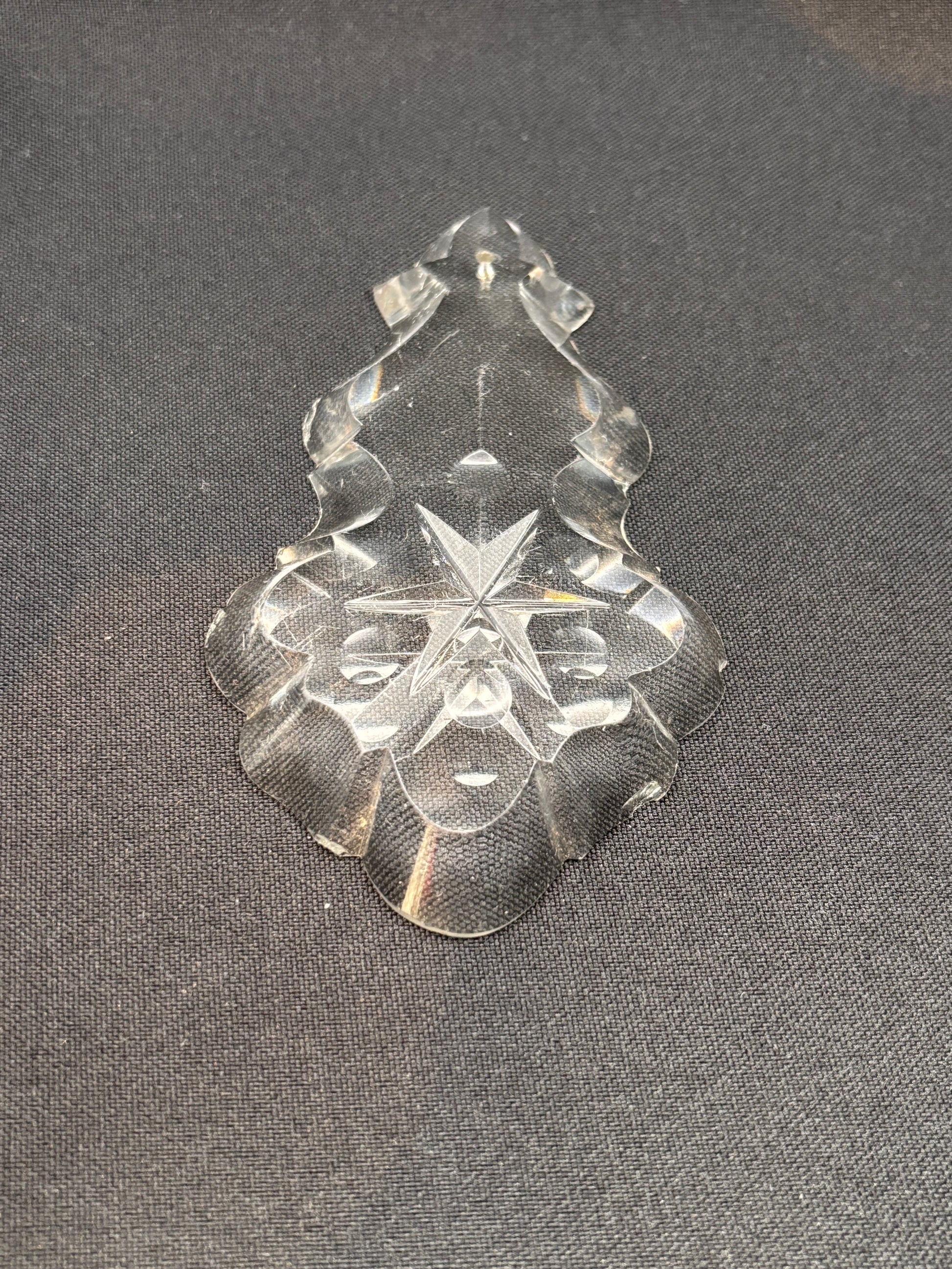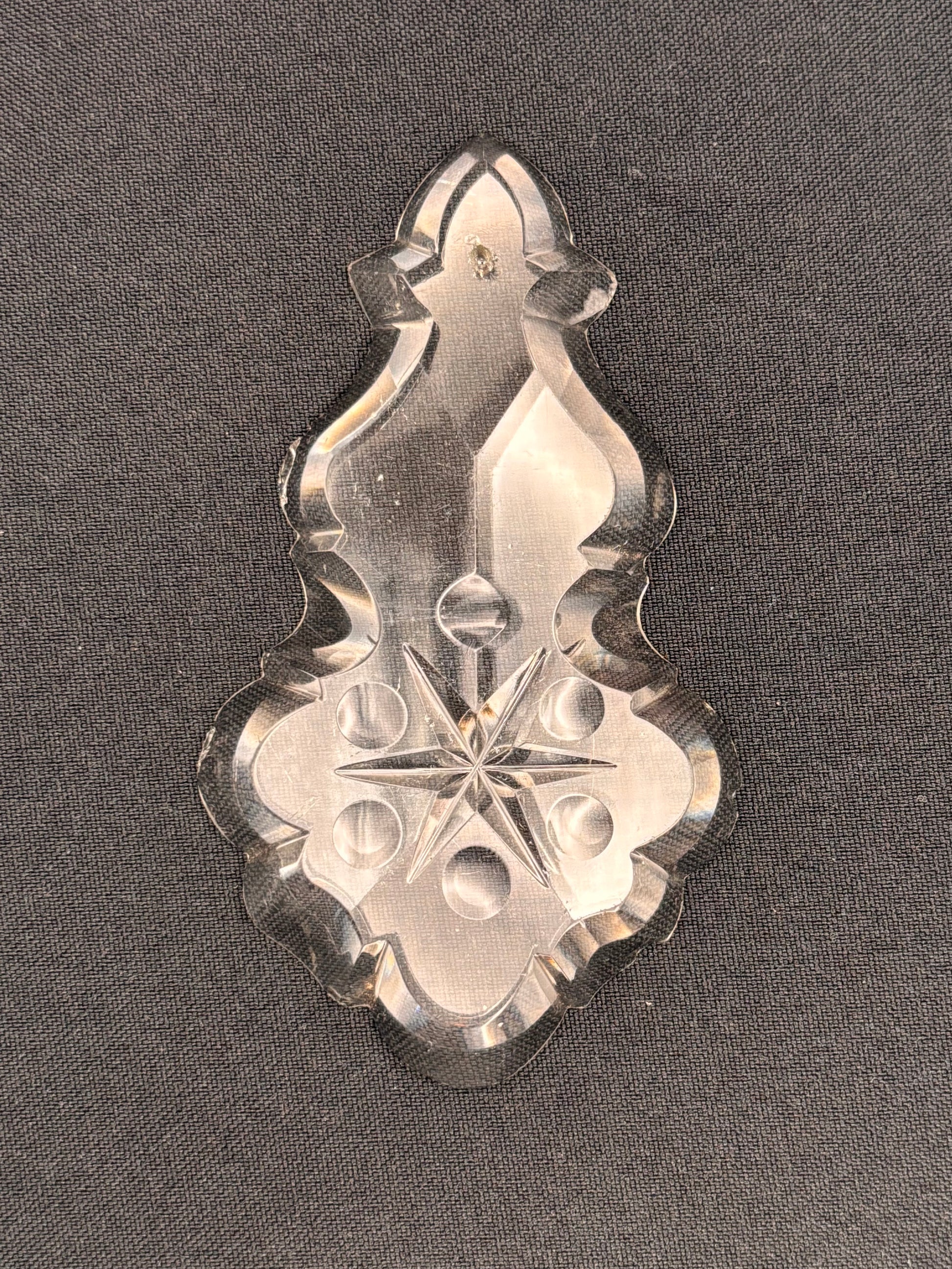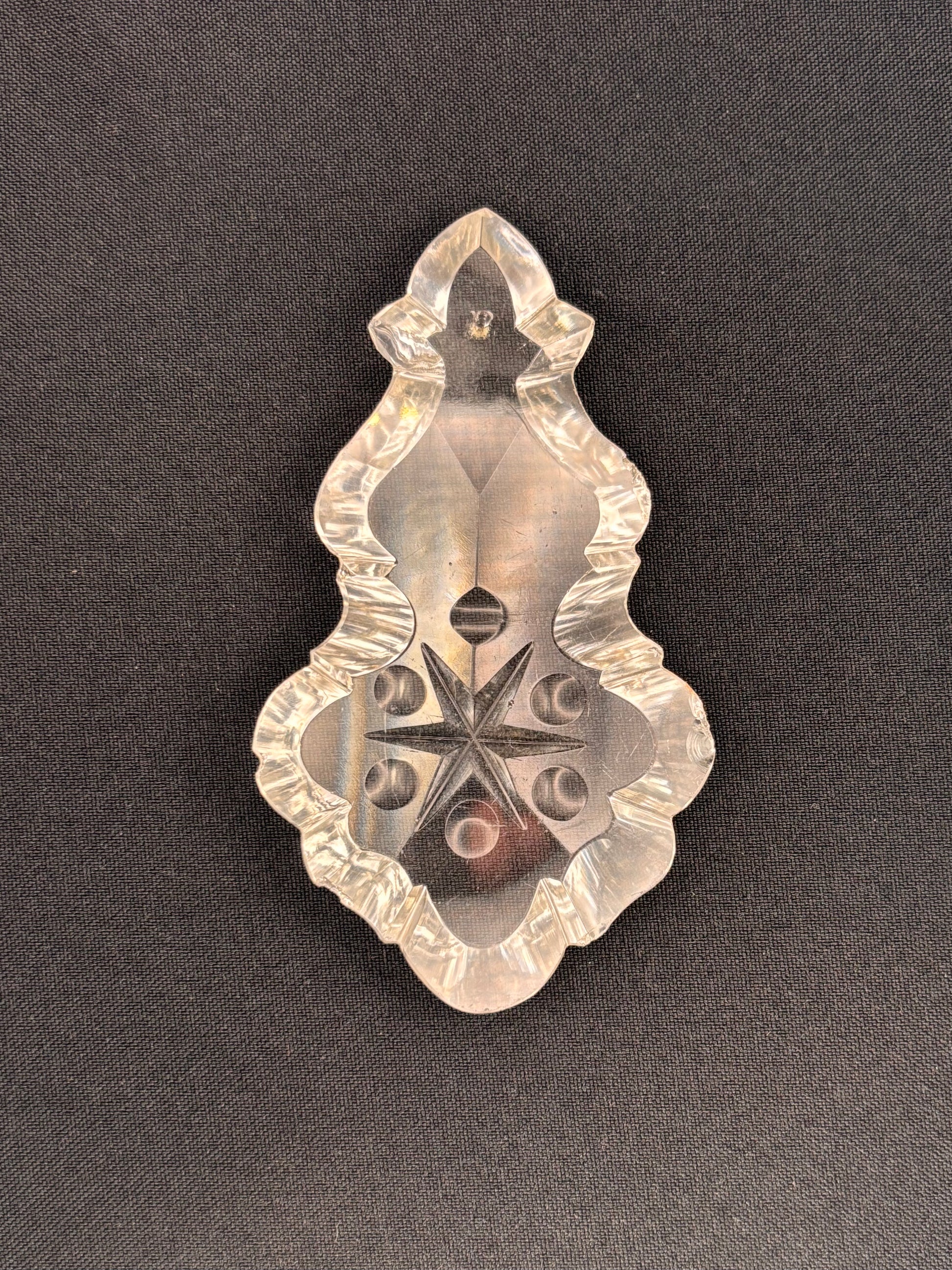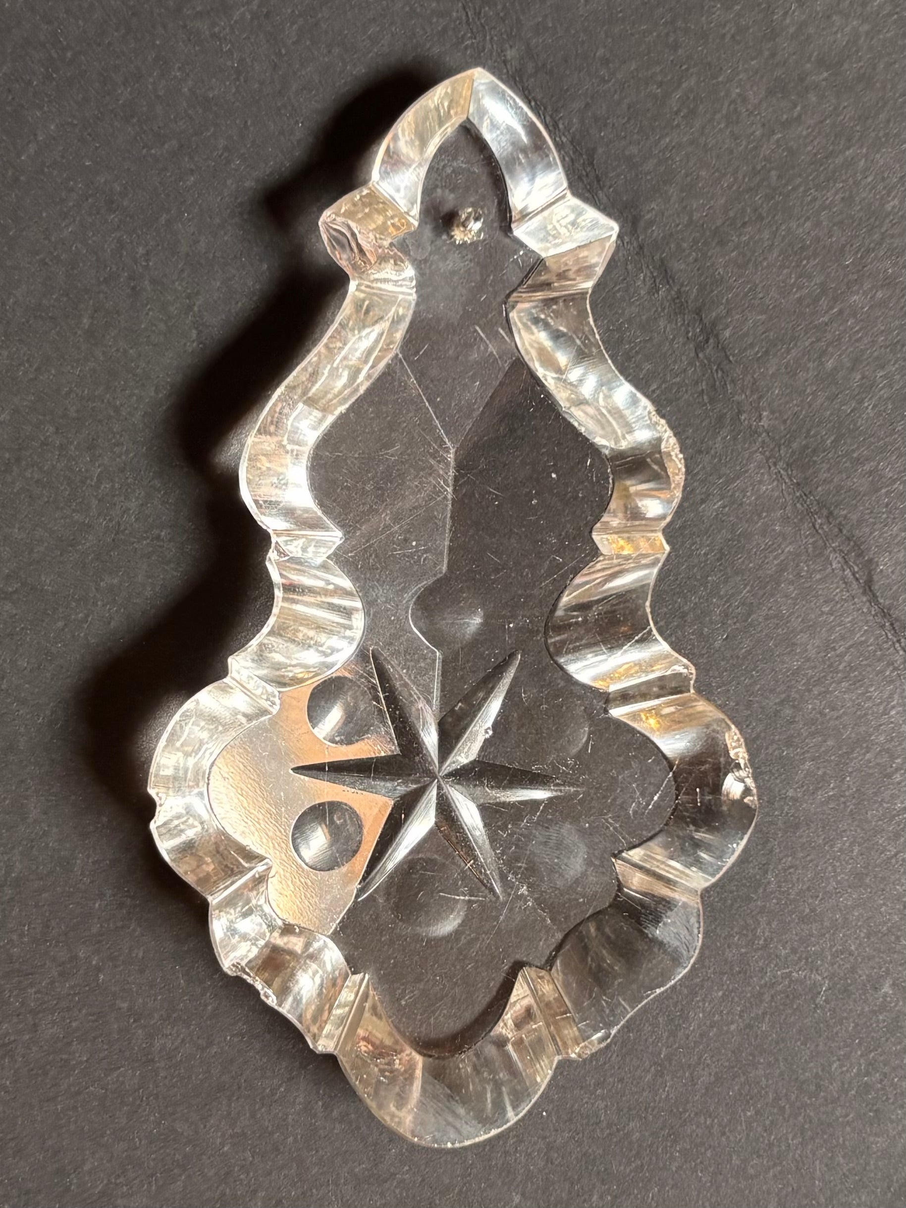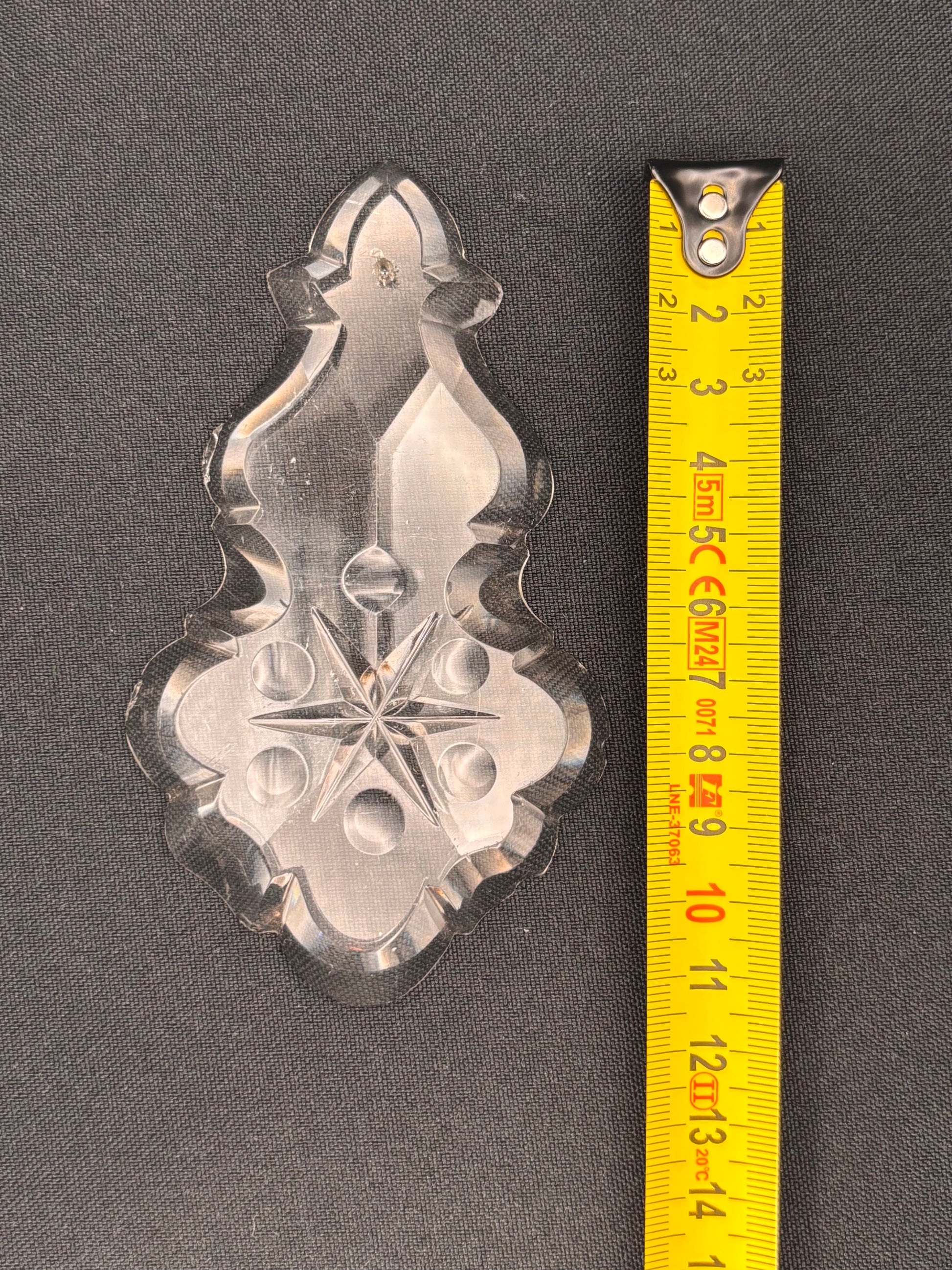 Plaquette bearing a five-pointed star and five hollow circles. The front of the piece is faceted as well (x-shape). Two pieces available, the thickness of the pieces vary: one is 10 mm, the other 12 mm. Price per piece.