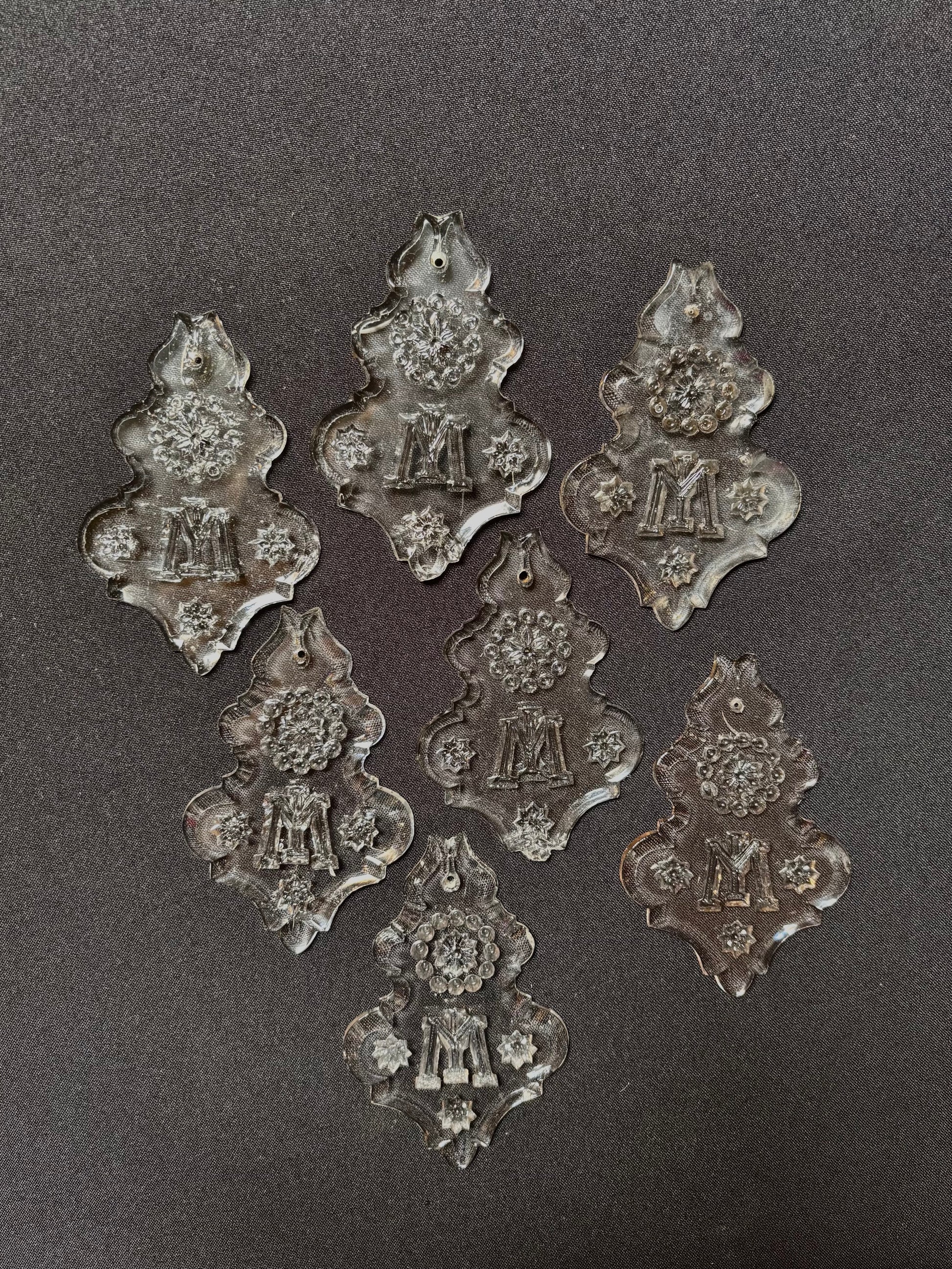 Plaquette with symbol 'MI' (Mary Immaculate) and a star with twelve peaks. Set of seven pieces