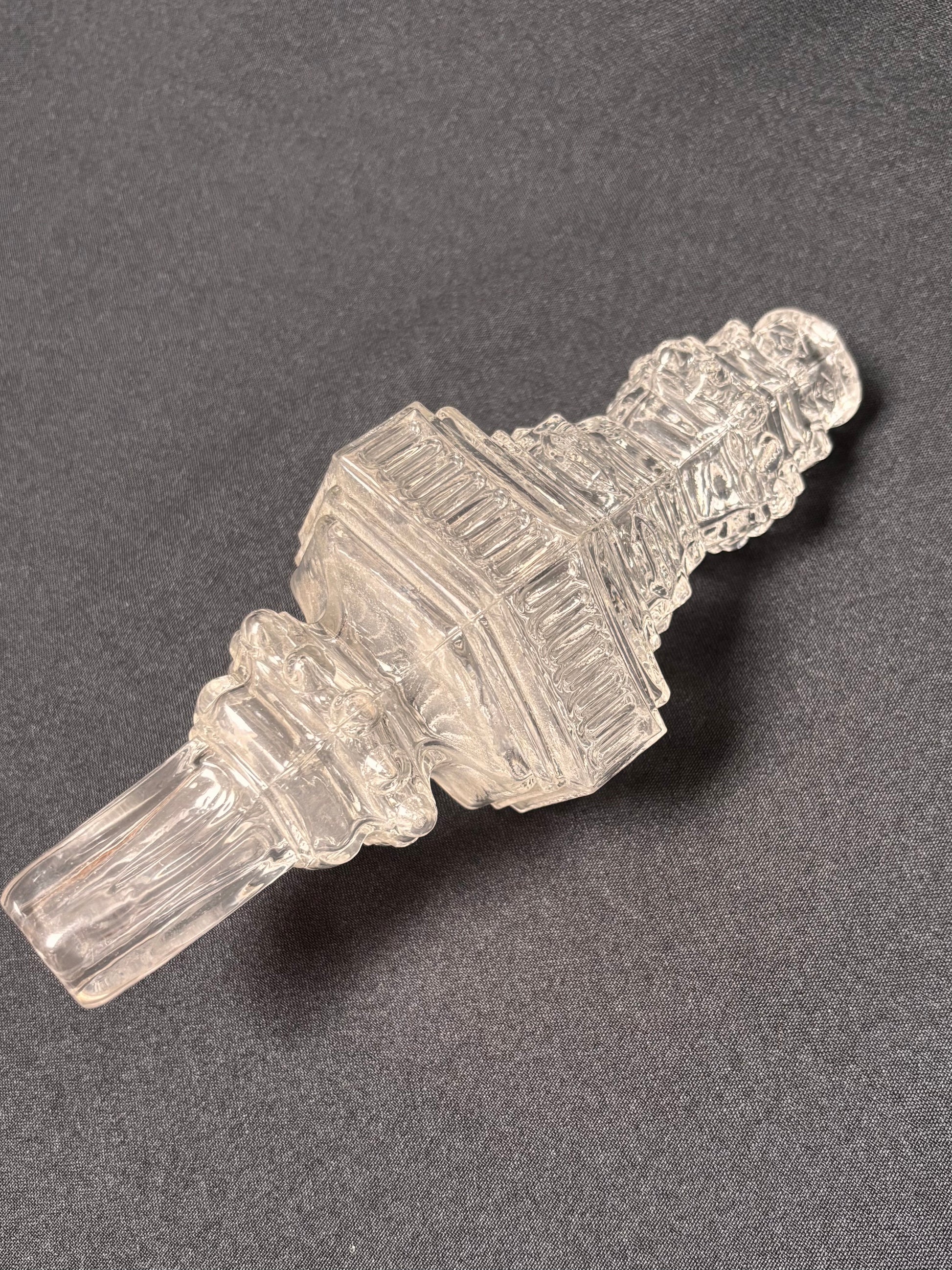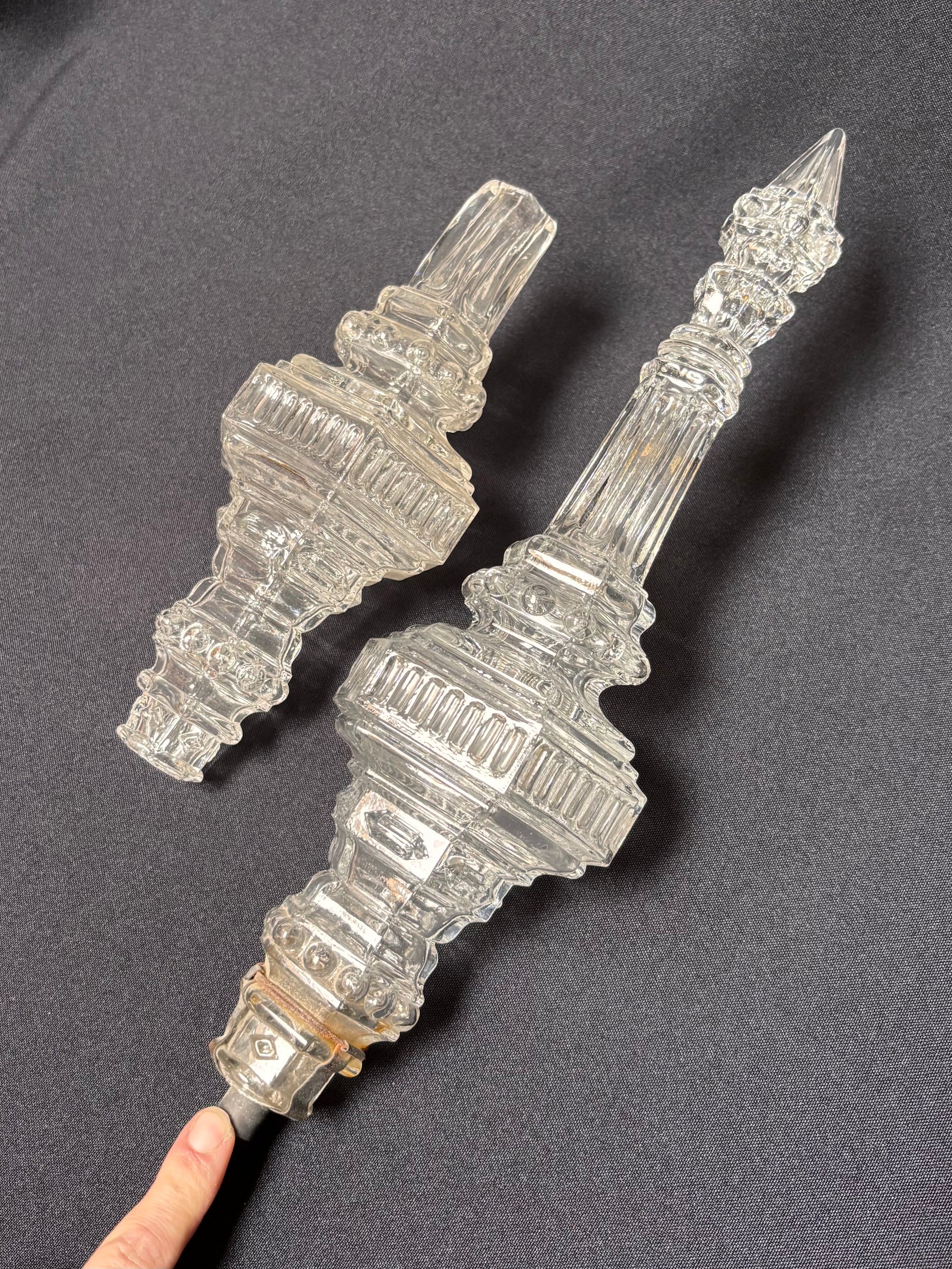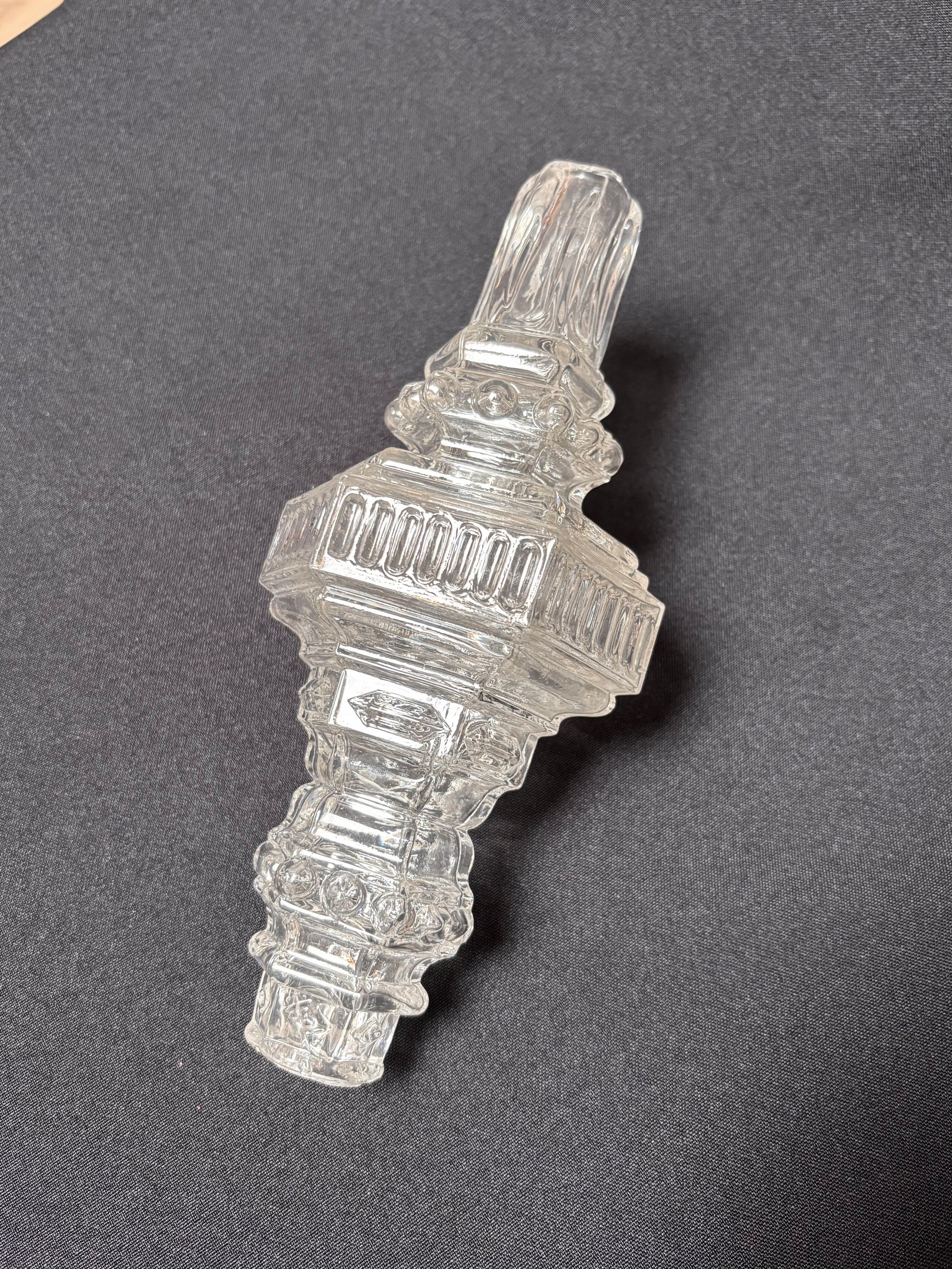 Stem element with straw-bead and trefoil-shaped facets. Neo-Gothic style, pressed moulded glass piece in a very good condition. Holes in the pieces vary between 15 to 20 mm.